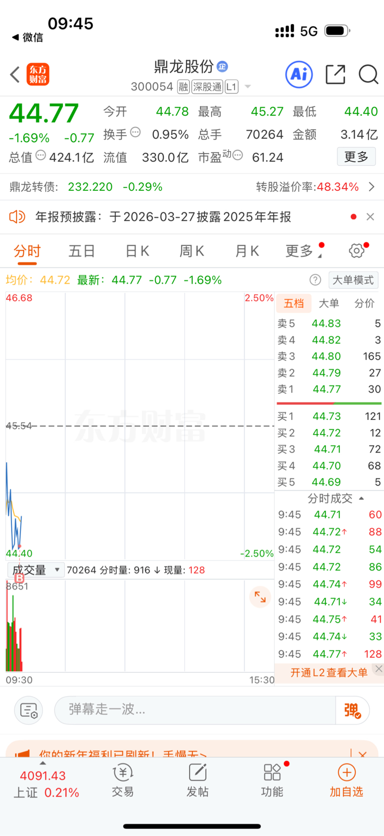 44.50选择低吸博弈$鼎龙股份(SZ300054)$ #强势机会# #实盘记录# #投资干货# #投资随笔#