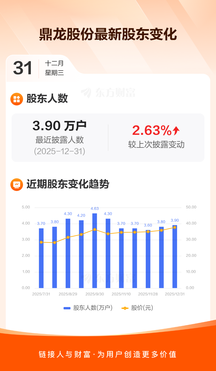 鼎龙股份:截至12月31日最新股东户数3.90万户,较上期增加2.63%