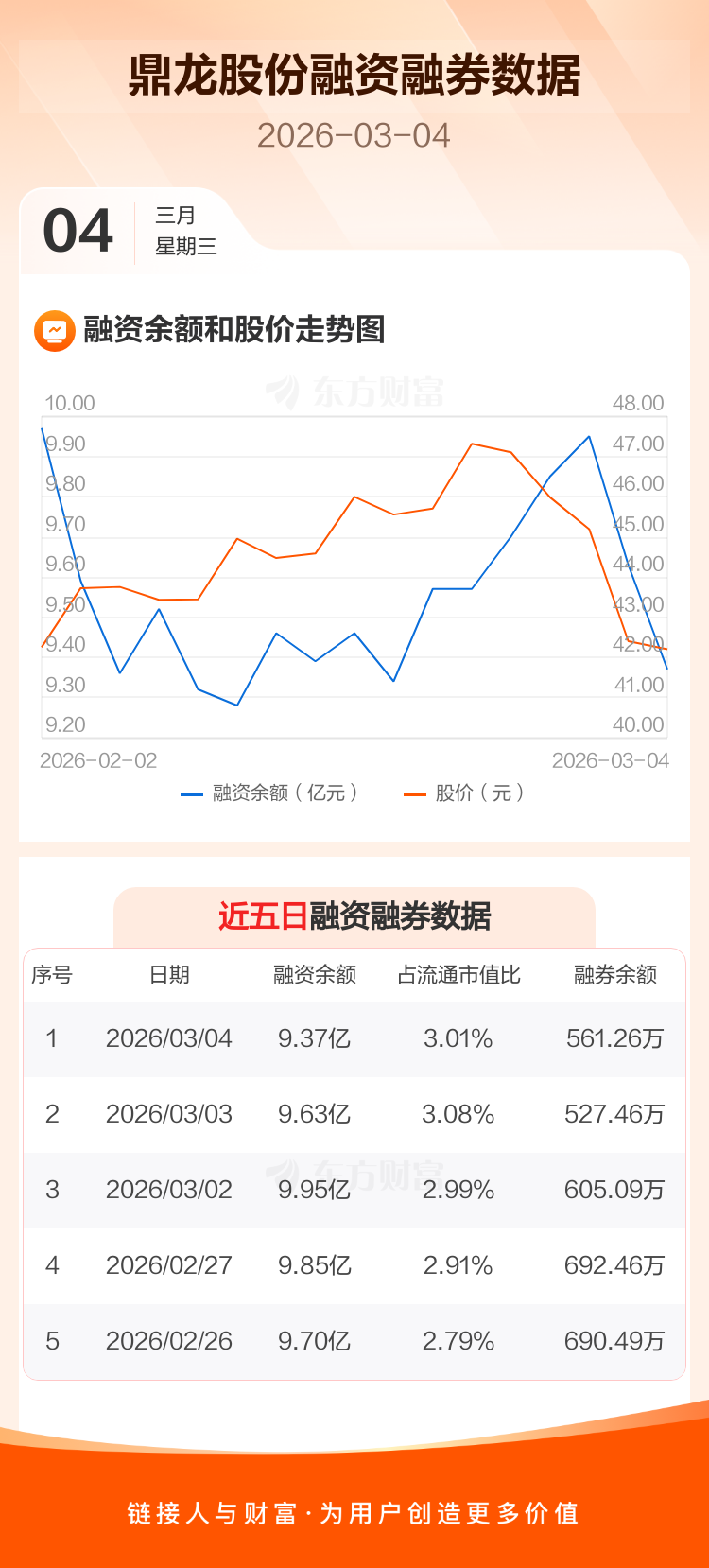 交易所最新数据显示,鼎龙股份于2026年3月4日获融资买入3268.48万元,融资偿还5859.19万元,当日融资净偿还2590.71万元。目前,该股融资余额9.37亿,占流通市值比例为3.01%。