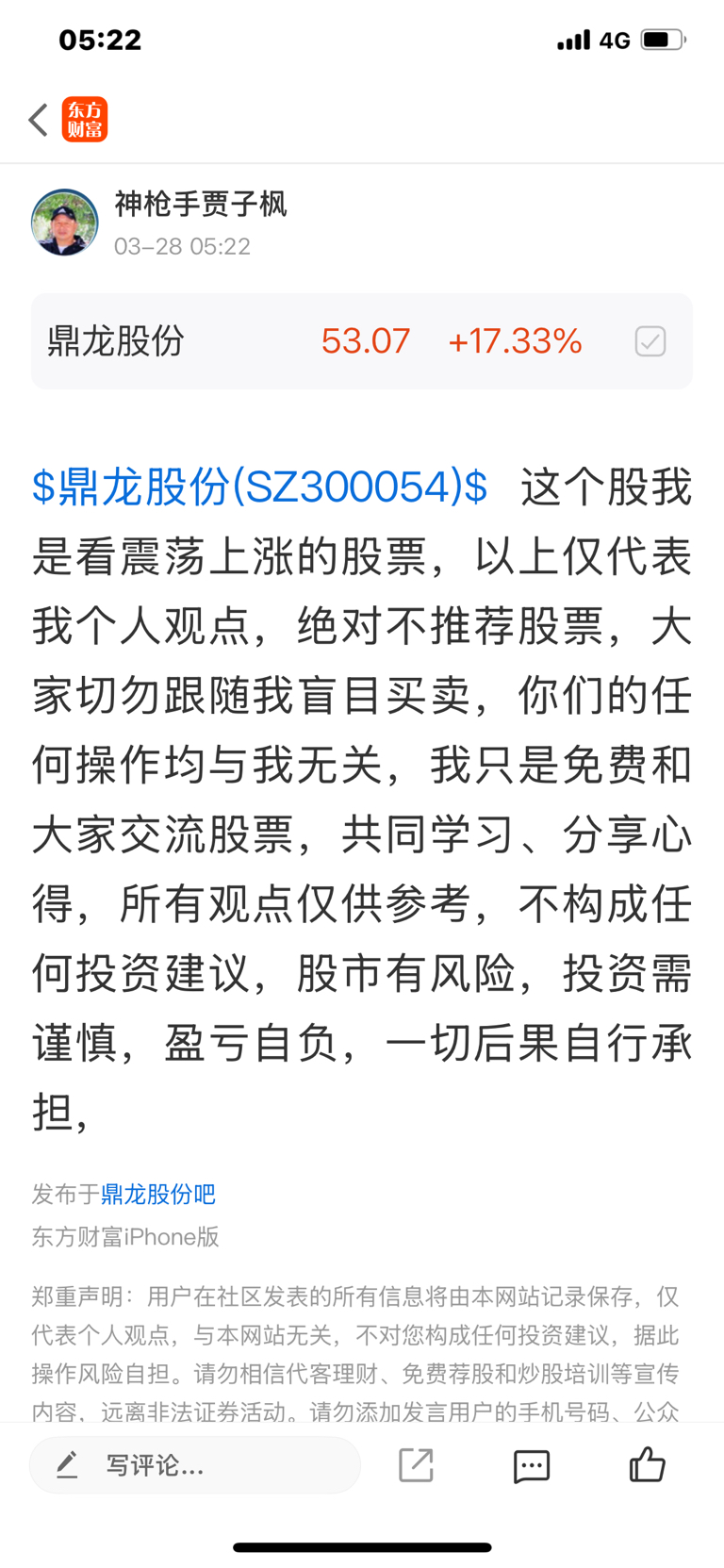 $鼎龙股份(SZ300054)$ 震荡上涨的股票,不可以追高,做好高抛低吸,以上仅为个人观点,不构成任何股票推荐,请大家切勿跟随买卖,所有操作由本人自主决策,与本人无关,本人仅为免费交流股票、共同学习分享心得,所有观点仅供参考,不构成任何投资建议,股市有风险,投资需谨慎,交易盈亏自负,一切后果自行承担,