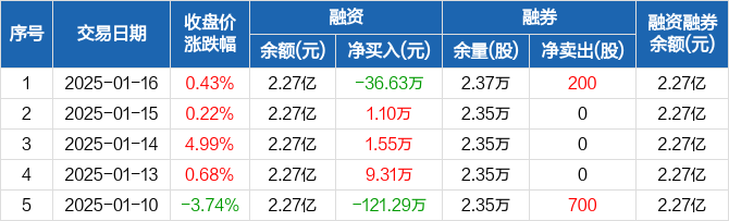 万邦达:融资净偿还36.63万元,融资余额2.27亿元(01-16)