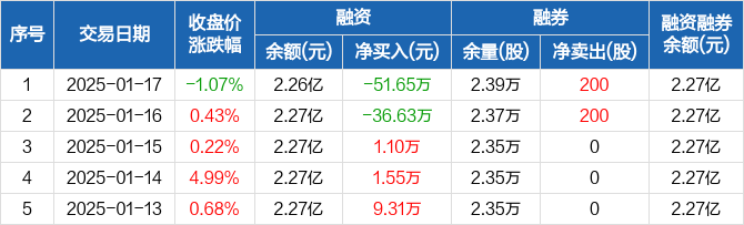 万邦达:融资净偿还51.65万元,融资余额2.26亿元(01-17)