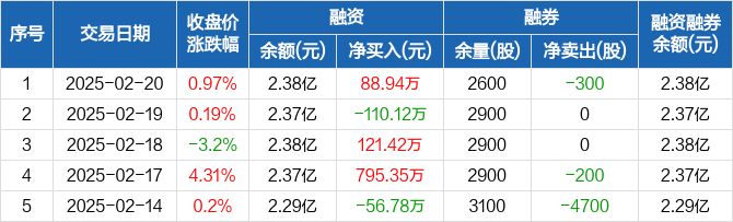 万邦达:融资净买入88.94万元,融资余额2.38亿元(02-20)