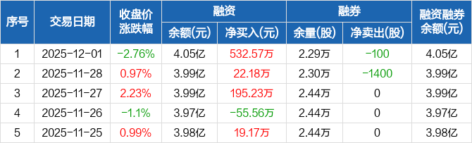 万邦达:连续3日融资净买入累计749.98万元(12-01)