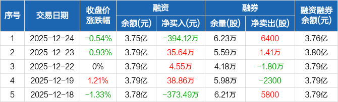 万邦达:融资净偿还394.12万元,融资余额3.75亿元(12-24)