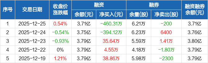 万邦达:融资净偿还460.31万元,融资余额3.71亿元(12-25)