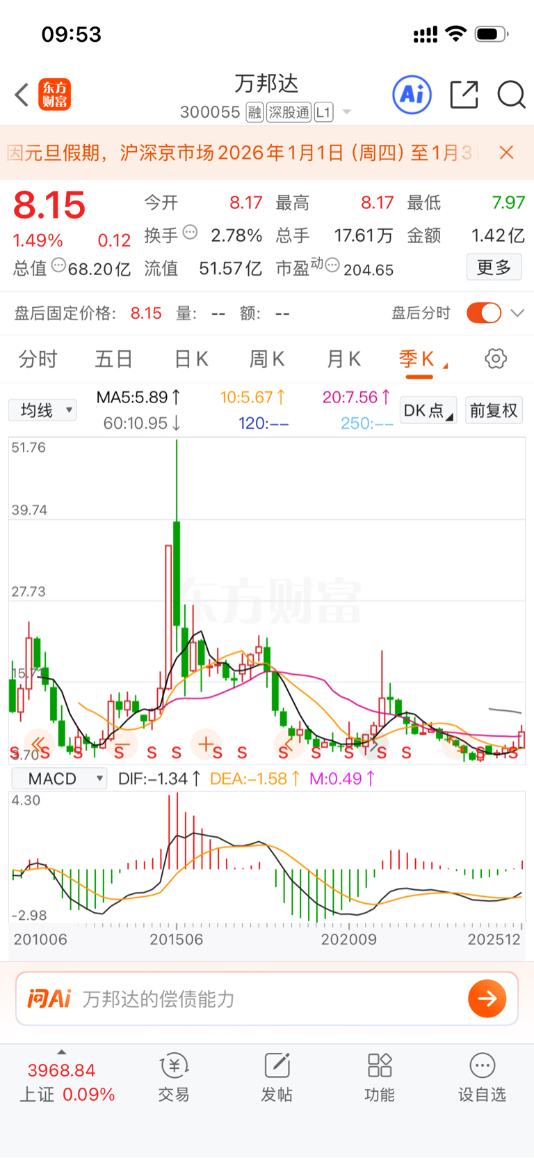 $万邦达(SZ300055)$ 长线看好,等待牛市的带动获利丰收