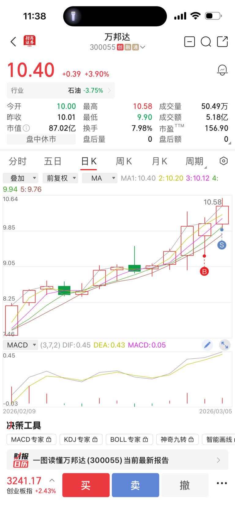$万邦达(SZ300055)$ 昨天买的,今天涨的太慢卖了,不及我的预期,坚决割肉,及时后面涨停也不后悔。