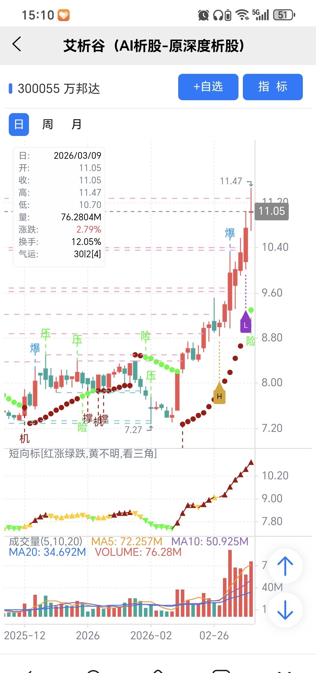 风险:股价下穿艾短波或红变绿、绿字。