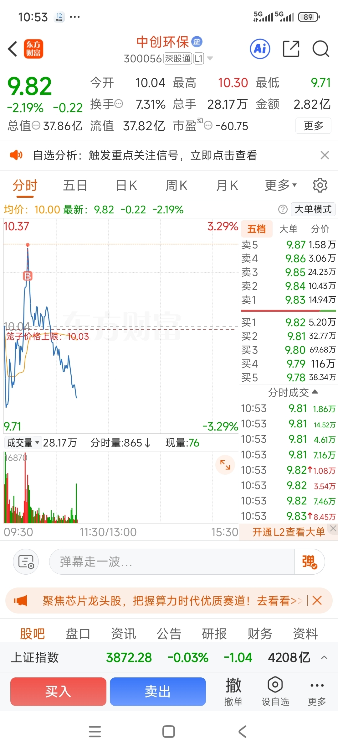 $中创环保(SZ300056)$ 今天买到最高点了。