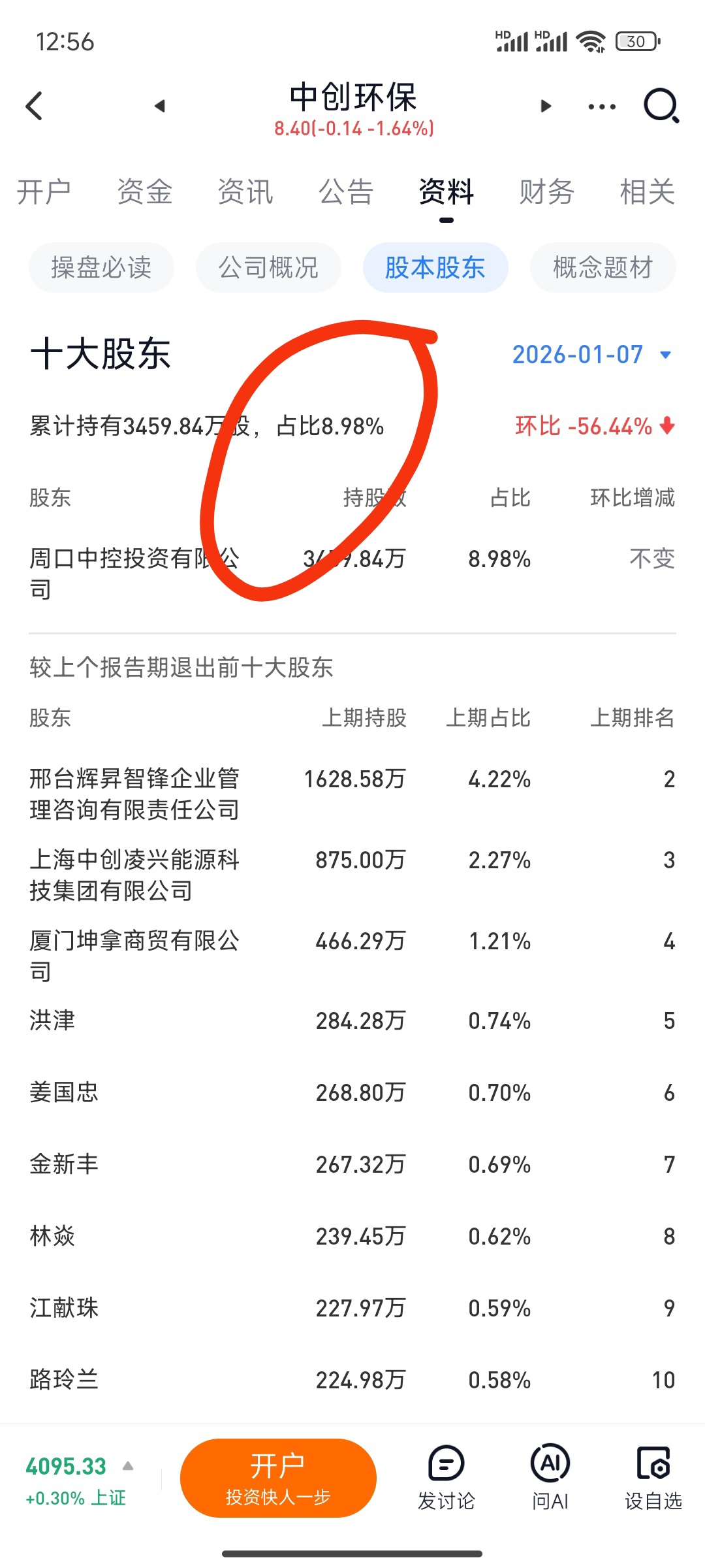 参考了下十大股东的持仓比例,请参考两图,9月30日是持仓比例是20%,7942万股。1月7日的十大股东持仓比例为8%,3459万股。减少了4483万股。请问有什么门道吗?请教下,谢谢