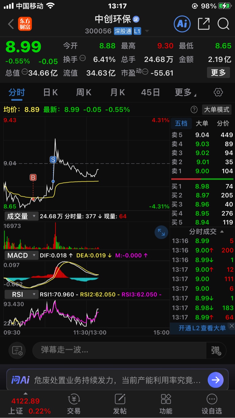 $中创环保(SZ300056)$ 两天都有试盘行为,我看你怎么走