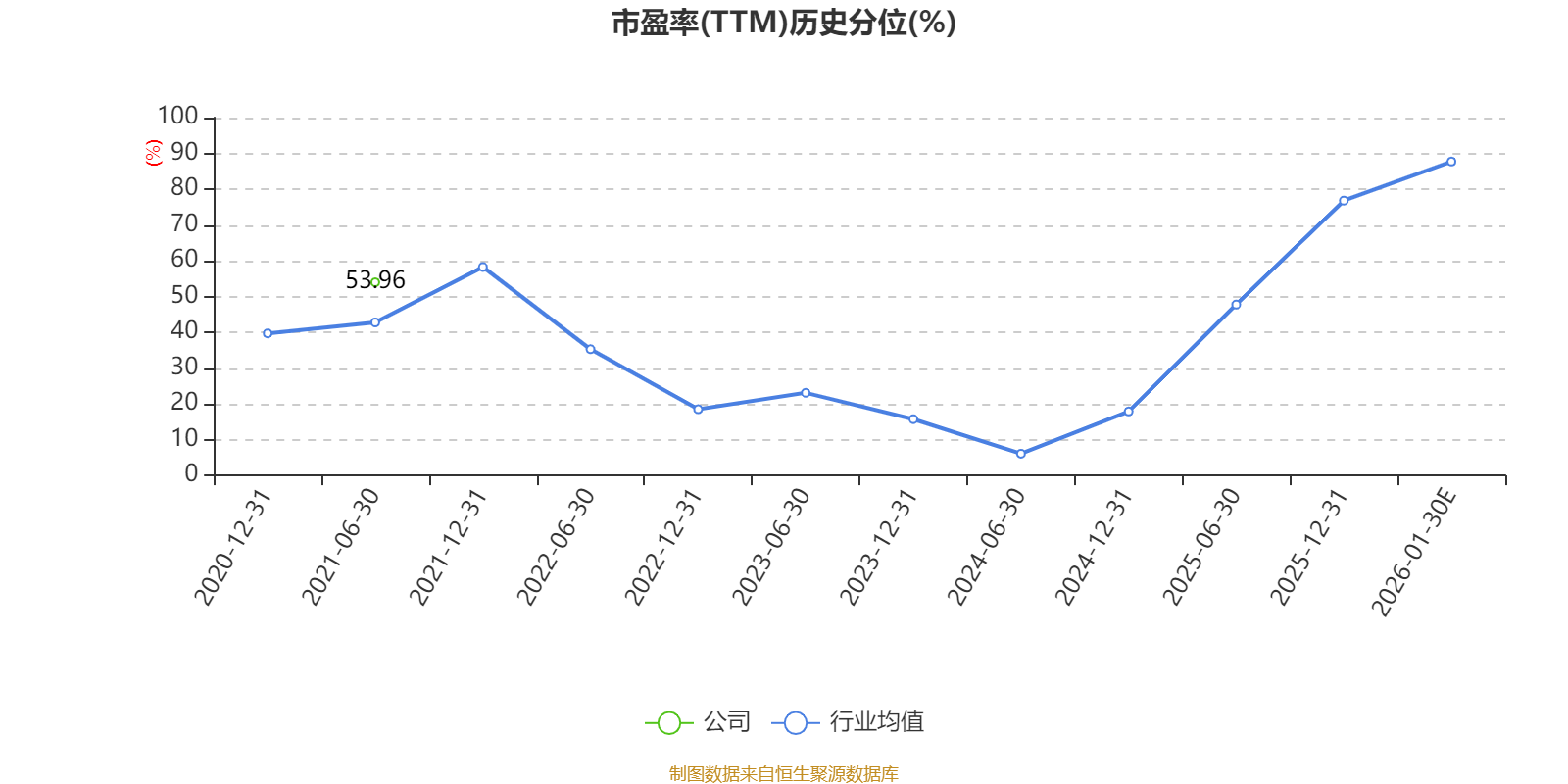 以本次披露业绩预告均值计算,公司近年市盈率(TTM)图如下所示: