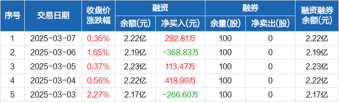万顺新材:融资净买入292.81万元,融资余额2.22亿元(03-07)