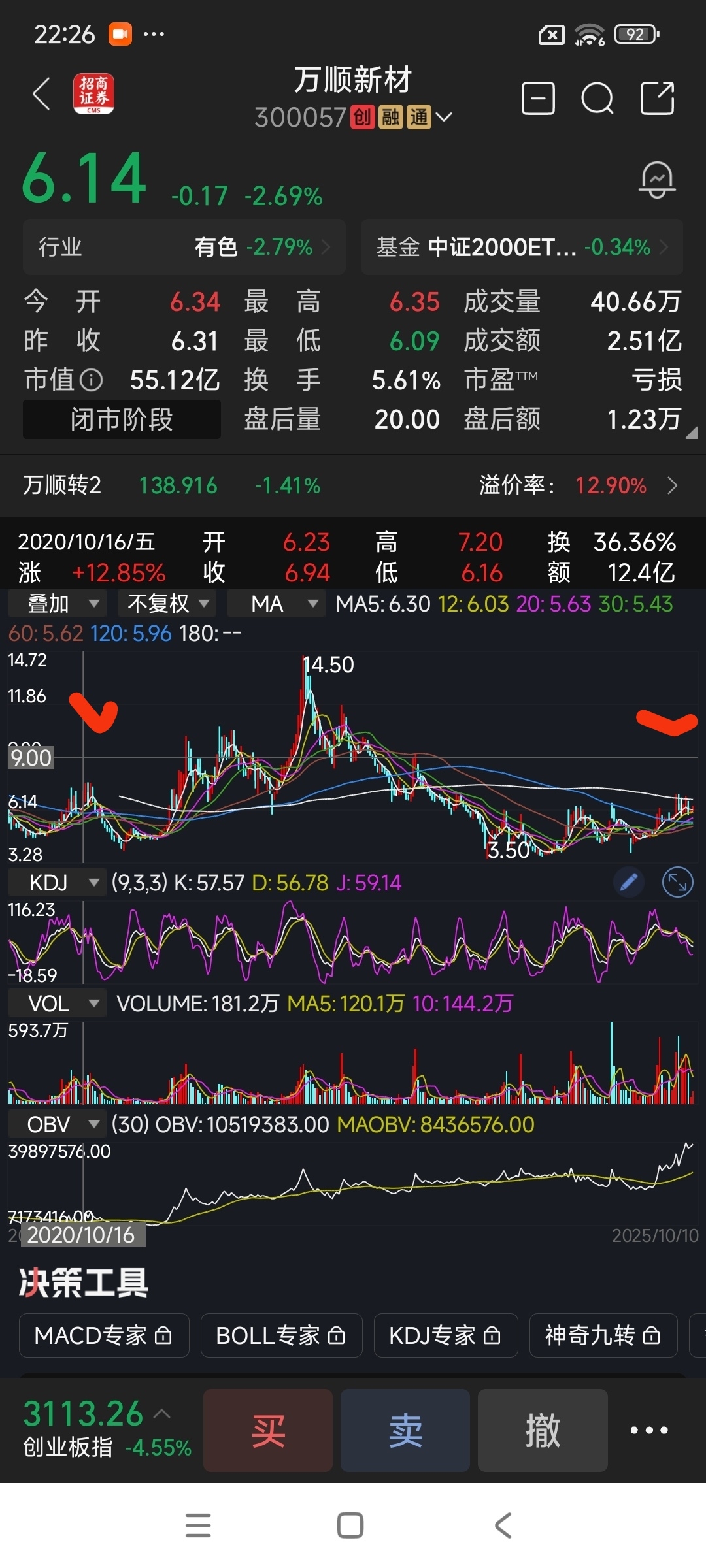 $万顺新材(SZ300057)$ 看看周线,这两个时间节点,都是10月开始,当心重复的节奏,年底不仅大概率没啥行情,可能还会跟去年一样往下!