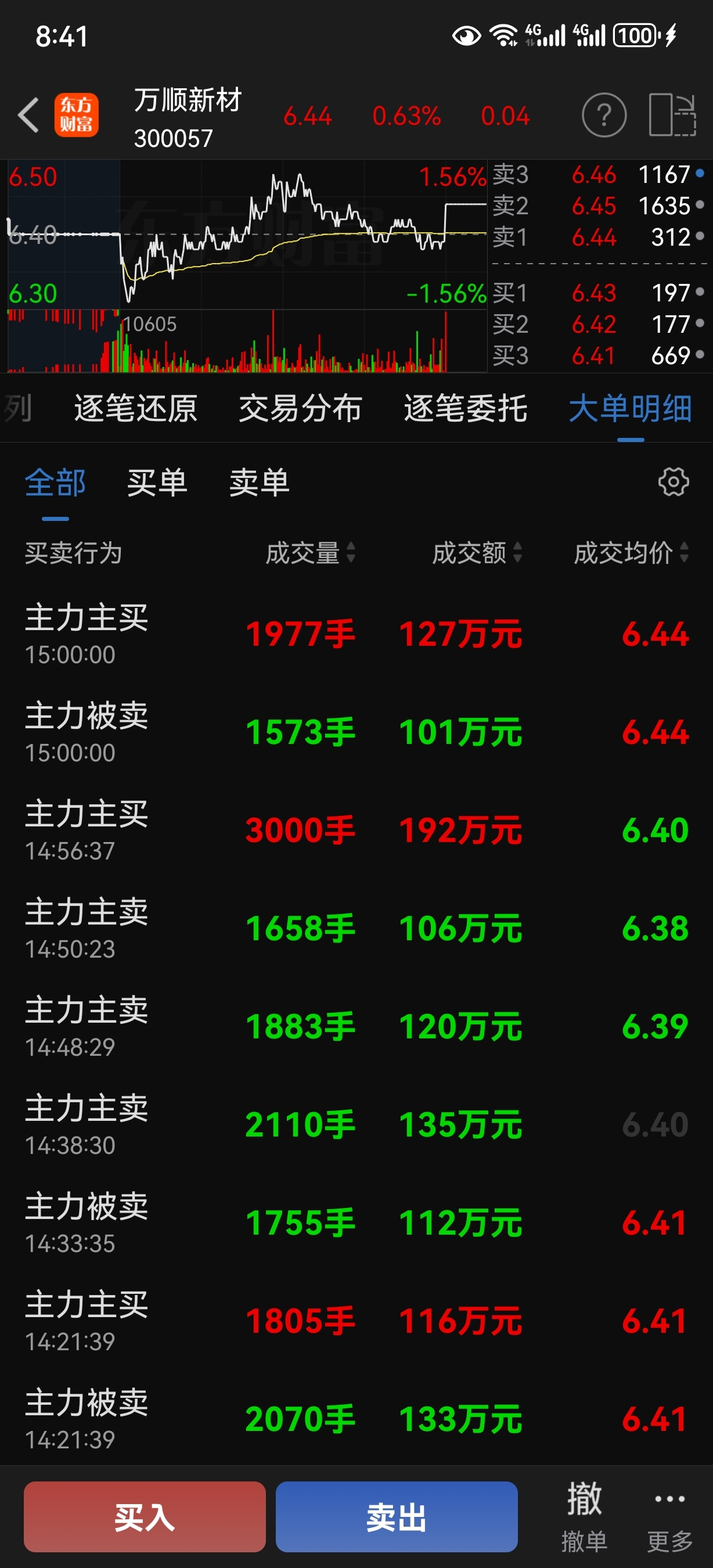 $万顺新材(SZ300057)$ 主力挂的卖单,然后自己吃掉,对倒拉升