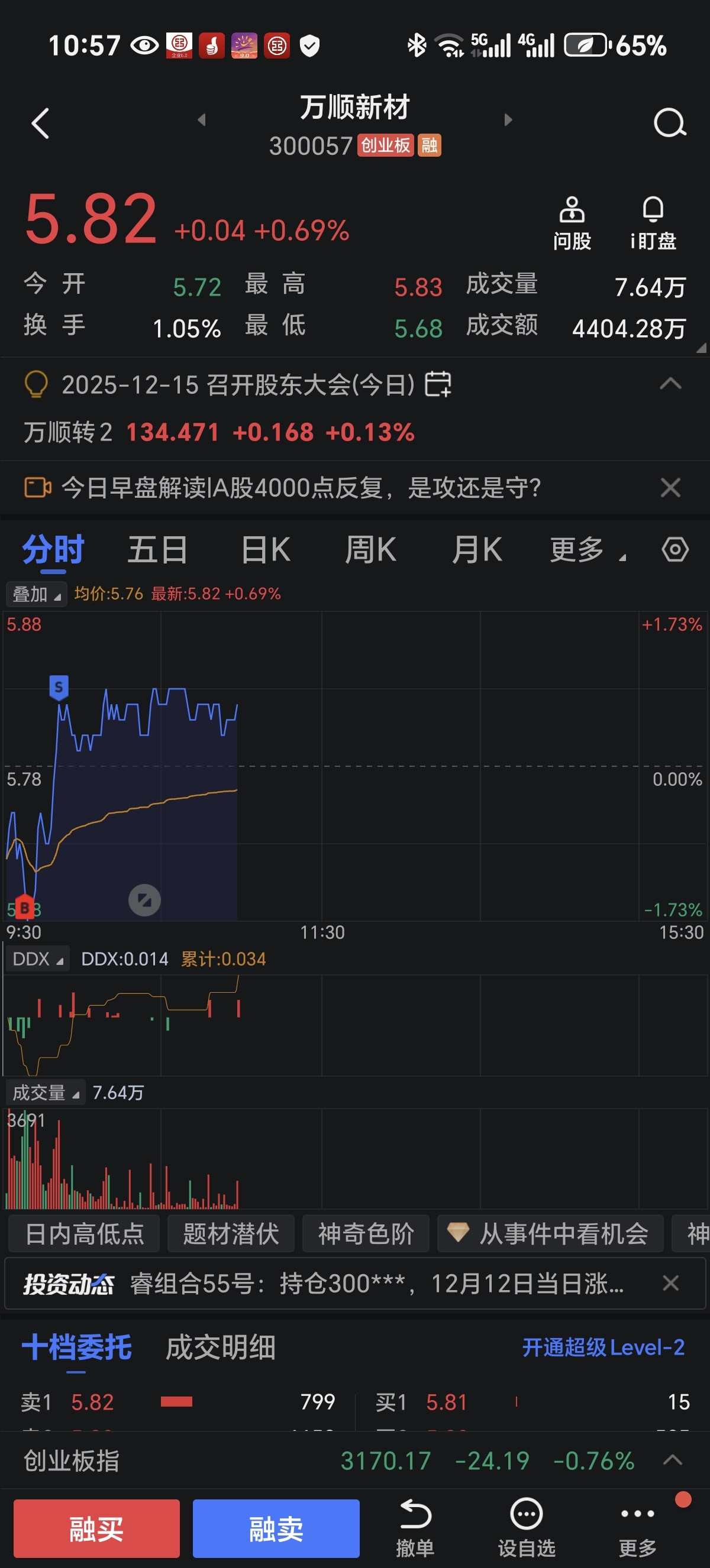 $万顺新材(SZ300057)$ 老毒,我相信你还会下来的