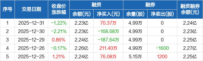 万顺新材:融资净买入70.37万元,融资余额2.23亿元(12-31)