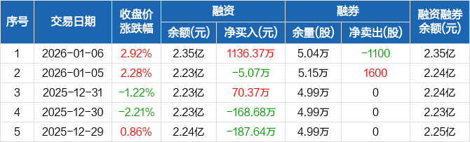 万顺新材:融资净买入1136.37万元,融资余额2.35亿元(01-06)