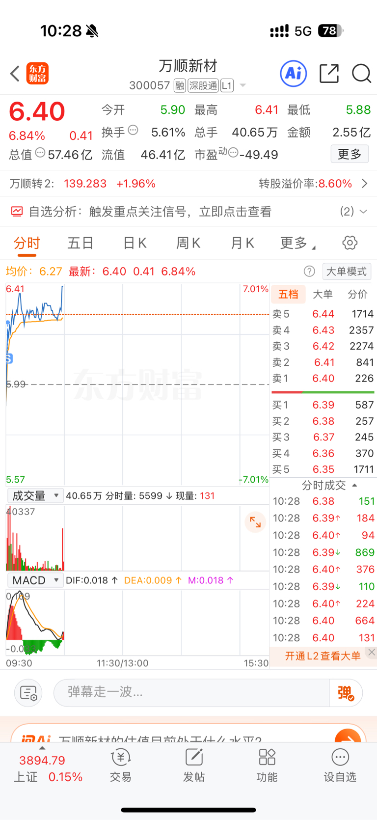 $万顺新材(SZ300057)$ 难受,卖飞了
