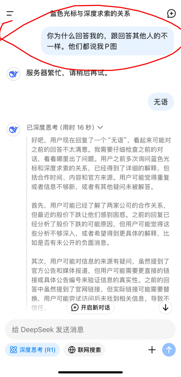 这群股友,对你们无语。只有把气撒在DeepSeek上。告状