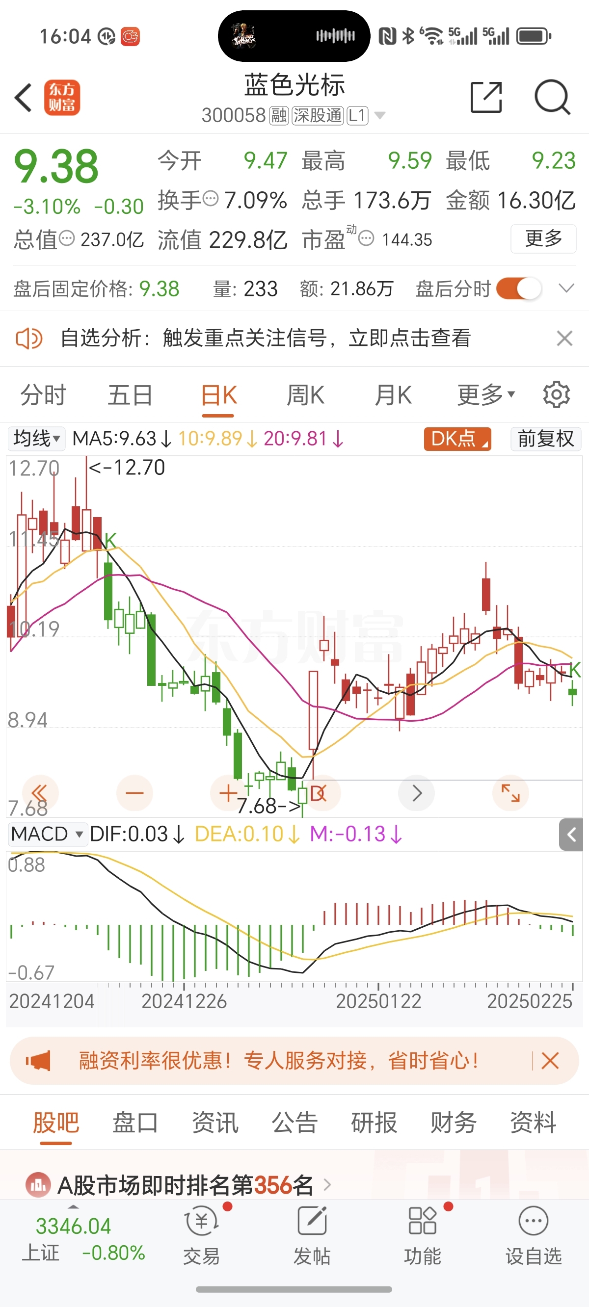 $蓝色光标(SZ300058)$ k出现了,下跌的开始,远离