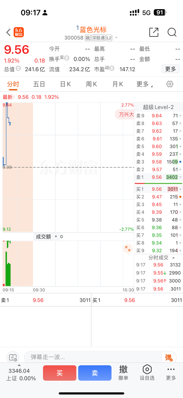 $蓝色光标(SZ300058)$ 竞价最高9.64、站住啊标子。