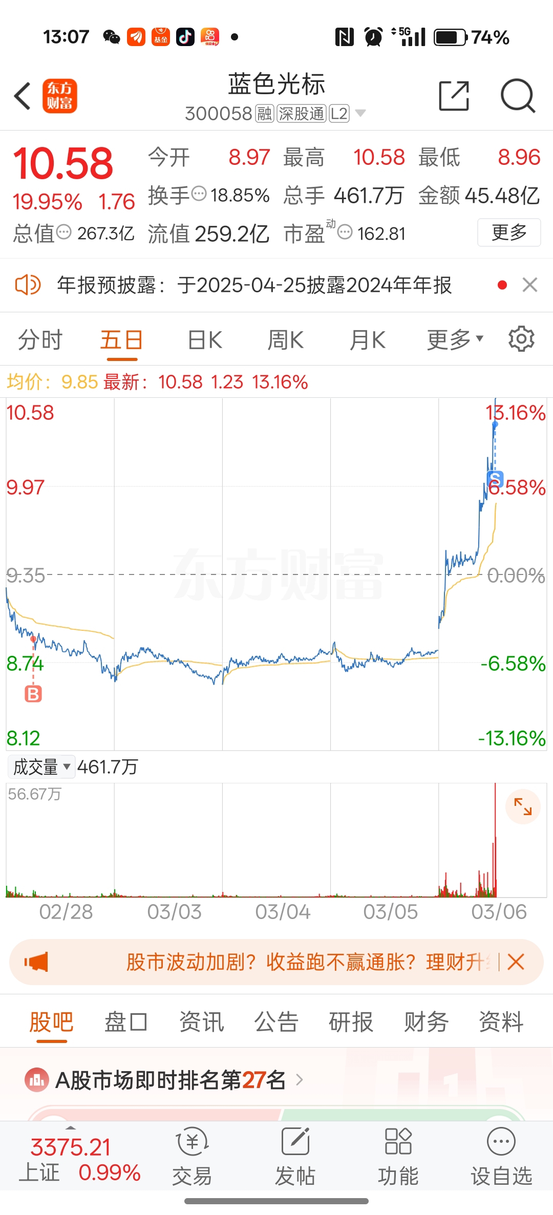 $蓝色光标(SZ300058)$ 拿了两周,不断补仓,小赚了点