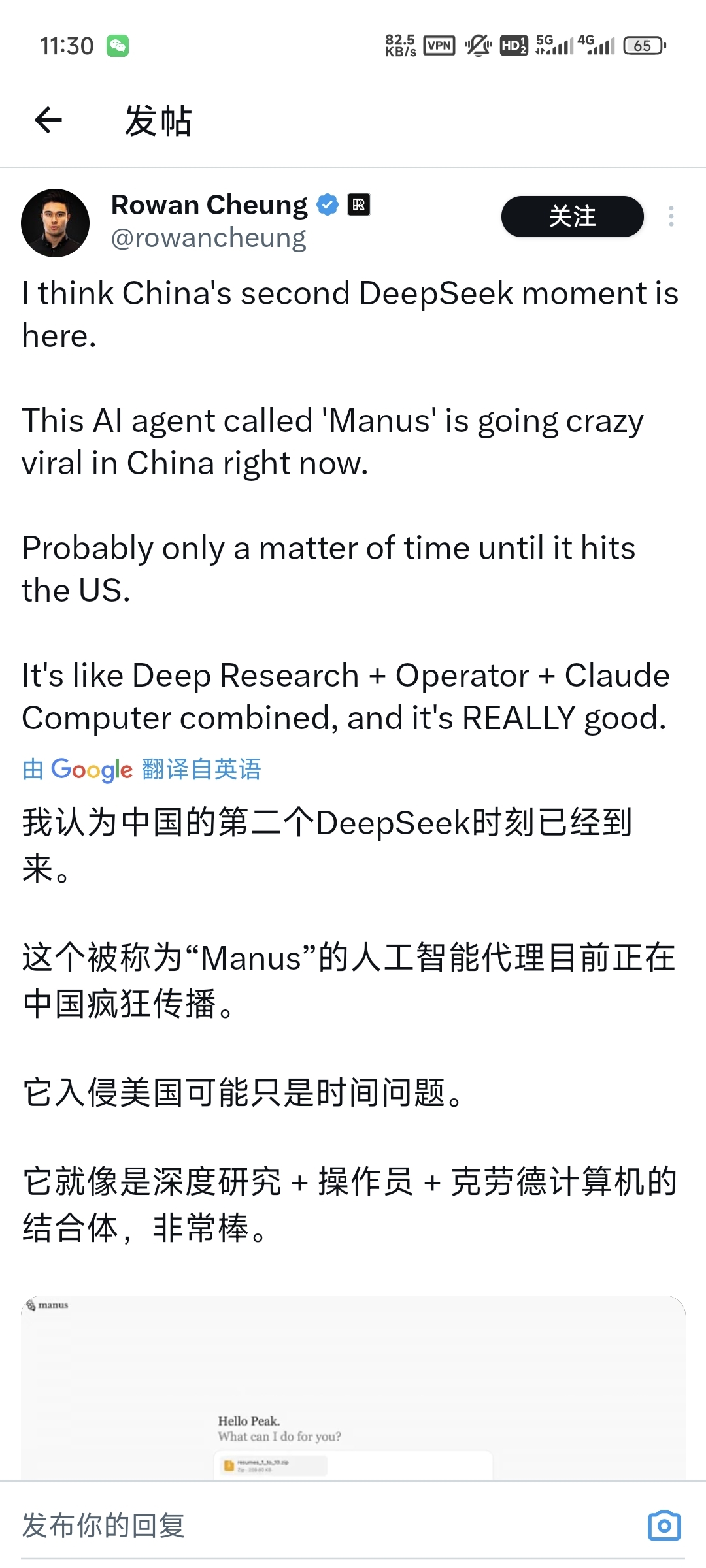 $蓝色光标(SZ300058)$ Manus王者归来,AI领域大佬盛赞Manus,外网逐步发酵,黑子闭嘴吧。