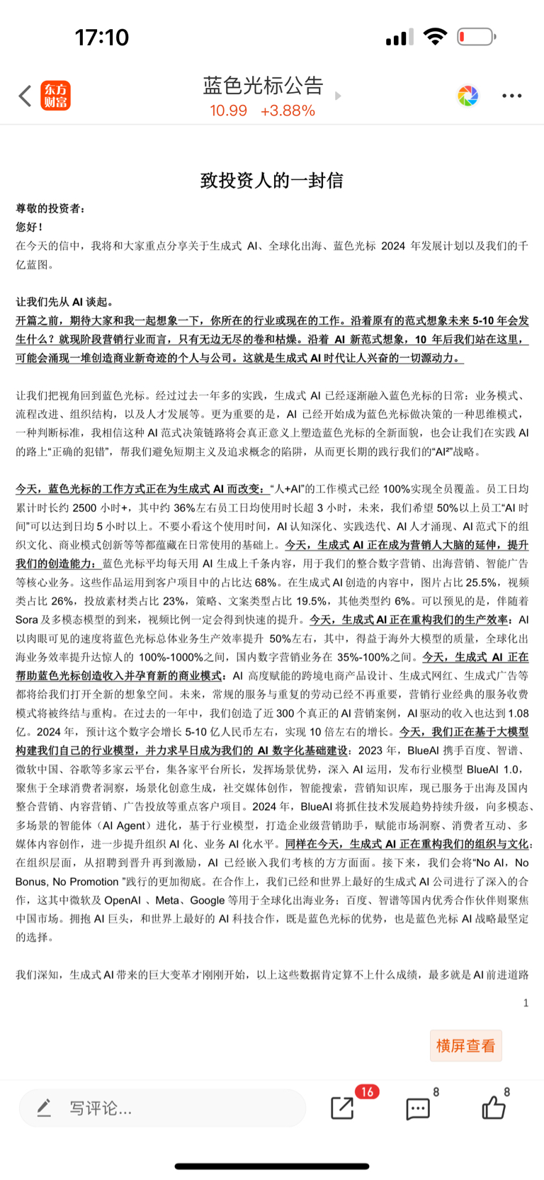$蓝色光标(SZ300058)$ 不考虑manus,光标本身就是正宗AI概念股,绝对主线!叠加manus,逆天了!