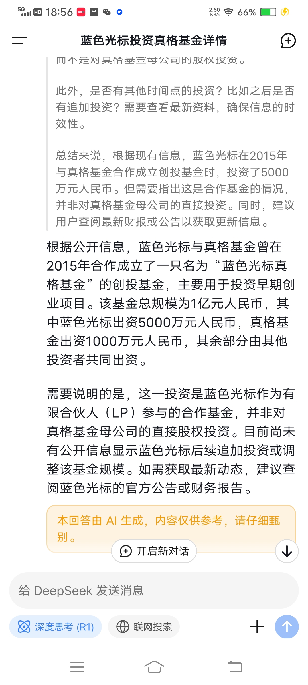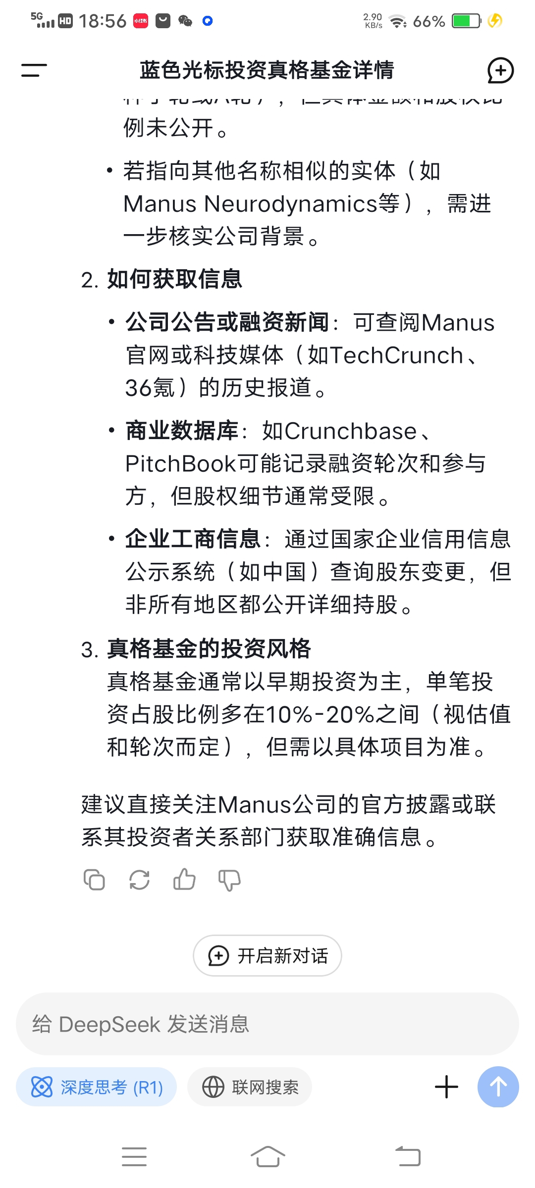 蓝标大约投资5000万真格基金,真格基金用1亿投资manus.占比百分之10-20股份之间。也就是说蓝标持有manus百分之7-10之间股份。大家有什么看法,欢迎评论?