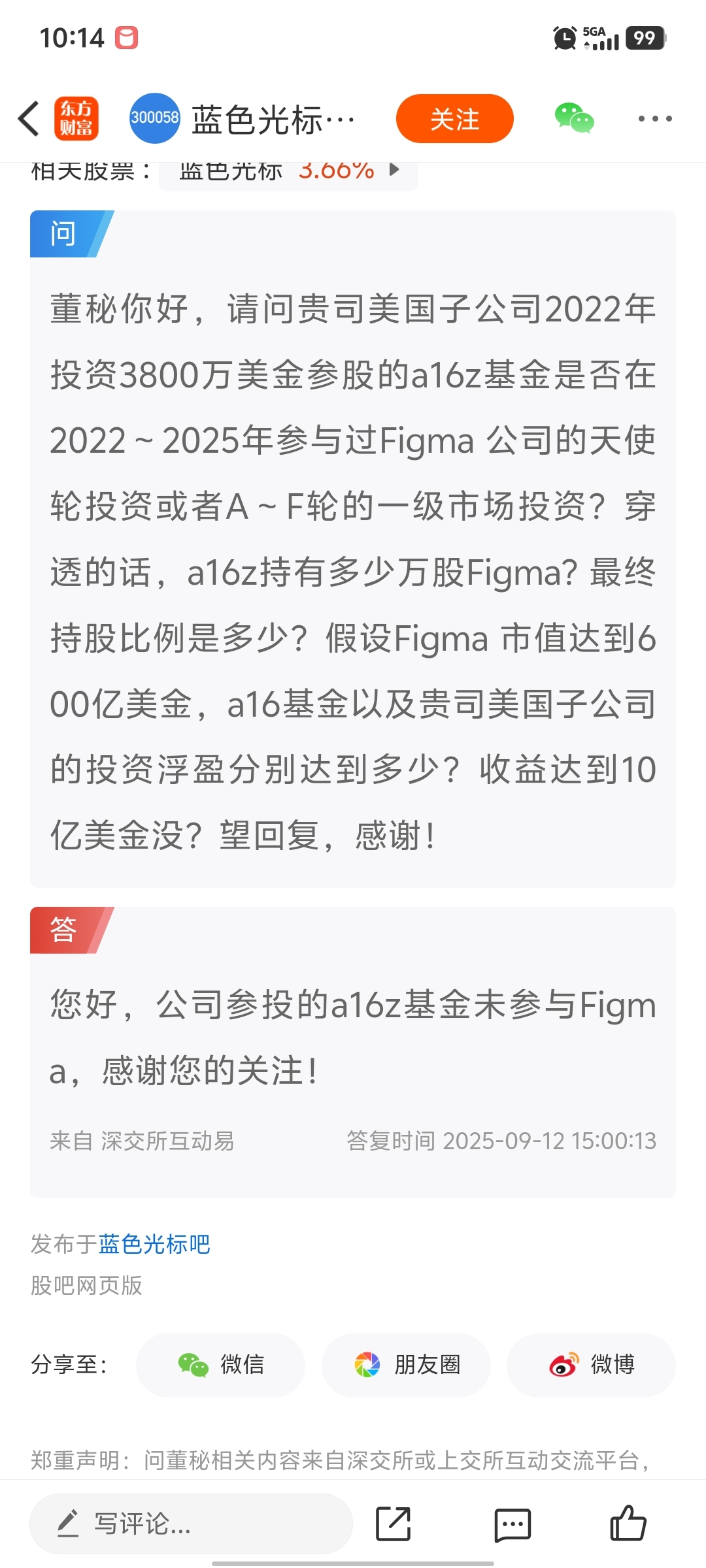 $蓝色光标(SZ300058)$ 公司确实参投过a16z,a16z也确实参投openai ,那蓝色光标确实是a股唯一持股openai,别说份额少,和而泰也很少