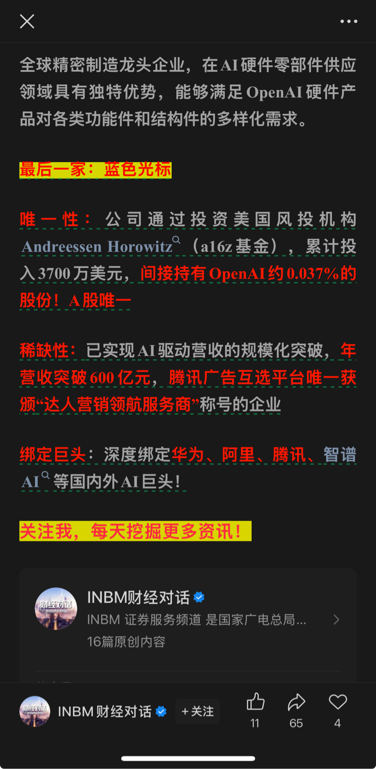 完了,官煤开始吹了,间接持股openai,a股唯一