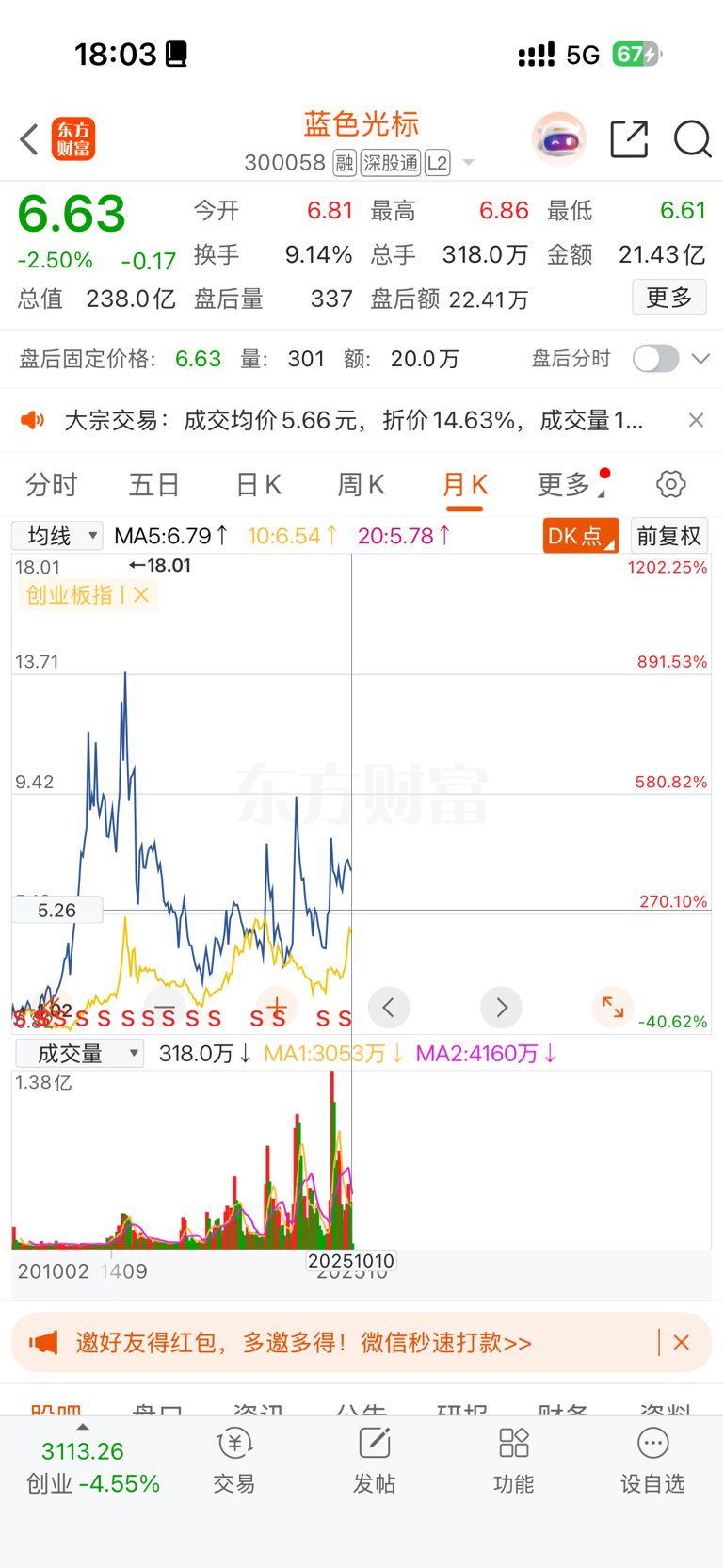 $蓝色光标(SZ300058)$ 看月线,现在还在高位,趋势向下。