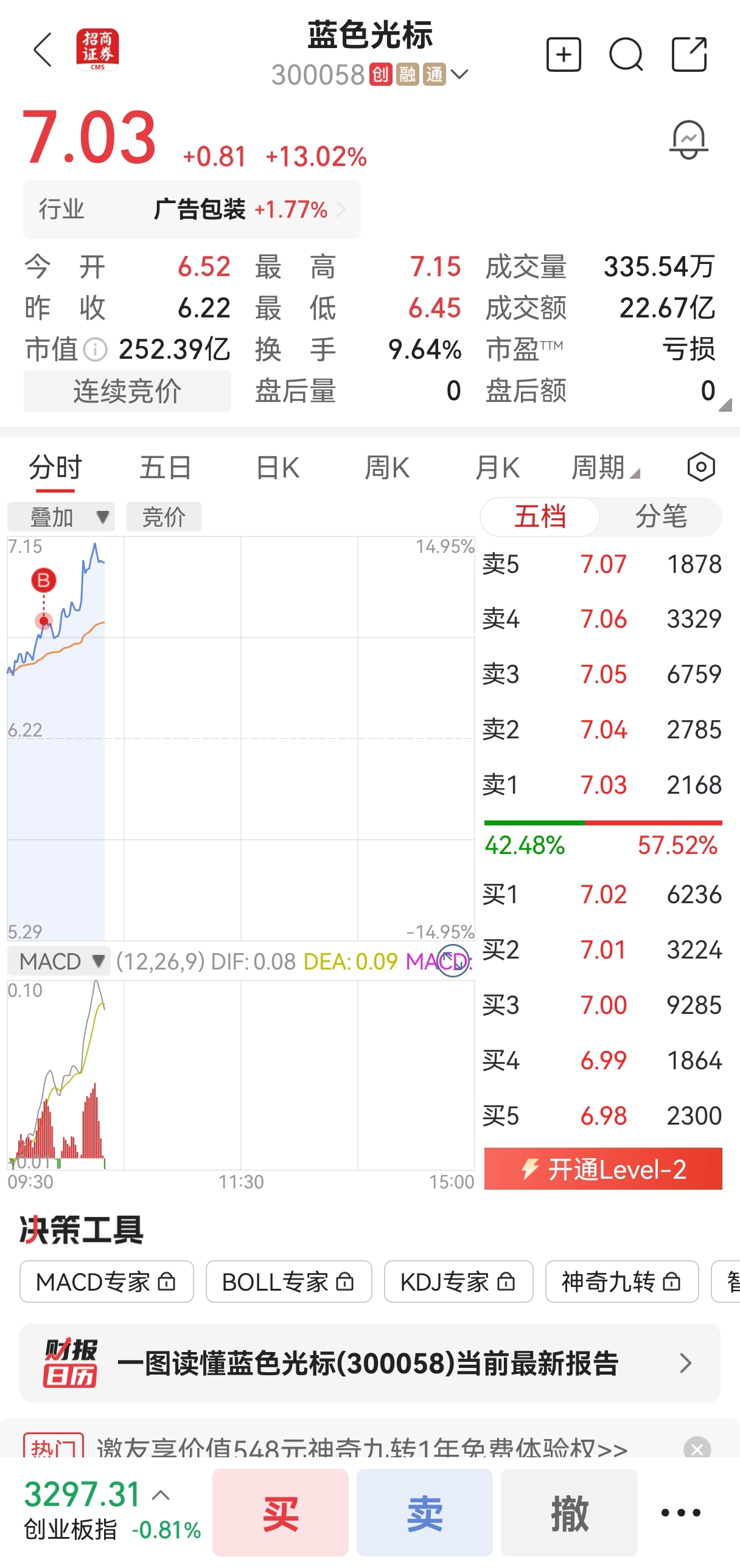$蓝色光标(SZ300058)$ 今天量有点大阿,感觉会跳水