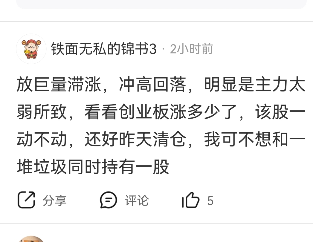 温馨提示: 1.根据《证券法》规定,禁止编造、传播虚假信息或者误导性信息,扰乱证券市场;2.用户在本社区发表的所有资料、言论等仅代表个人观点,与本网站立场无关,不对您构成任何投资建议。用户应基于自己的独立判断,自行决定证券投资并承担相应风险。《东方财富社区管理规定》