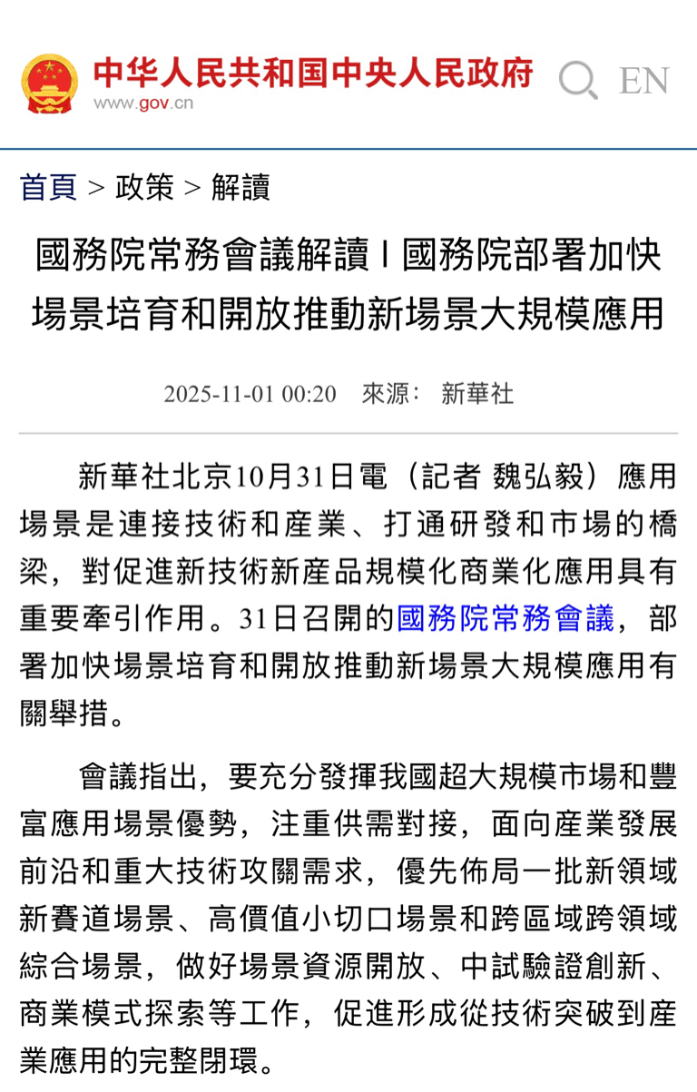 国务院常务会议:部署加快场景培育和开放推动新场景大规模应用有关举措这是首次纳入国
