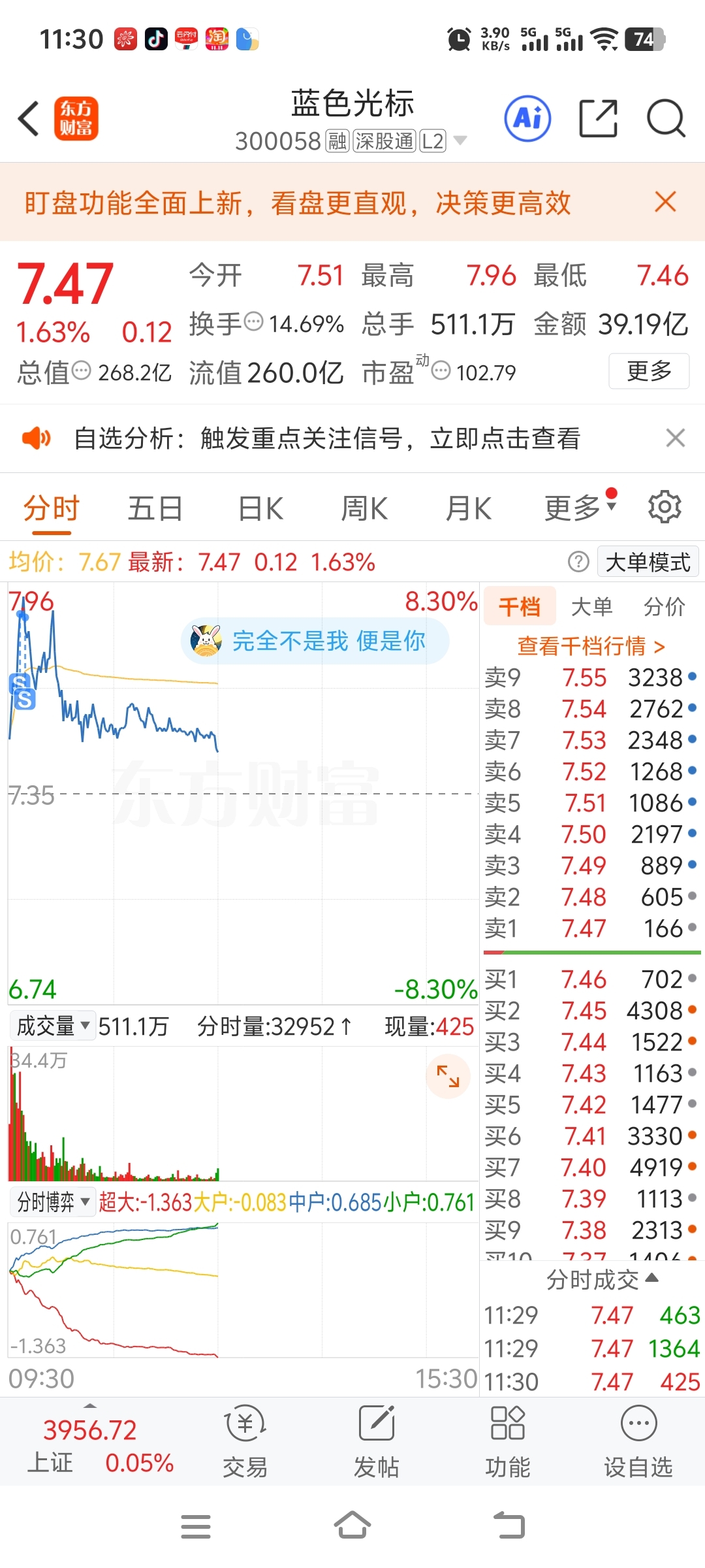 $蓝色光标(SZ300058)$ 就知道又是高开低走的货,连续三天了,不看了,删除自选了,坑货的主力!