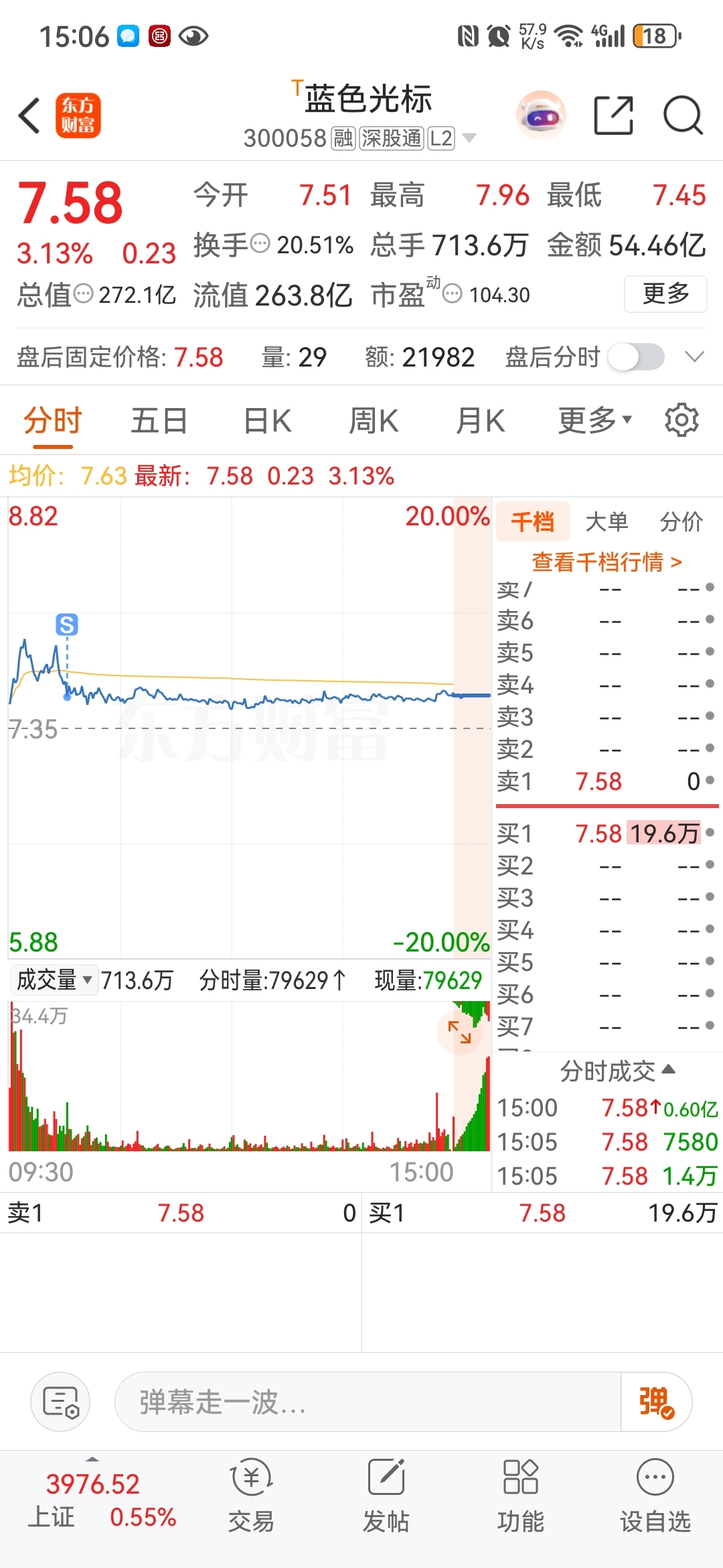 $蓝色光标(SZ300058)$ 明天给我拉个涨停,让我抽自己
