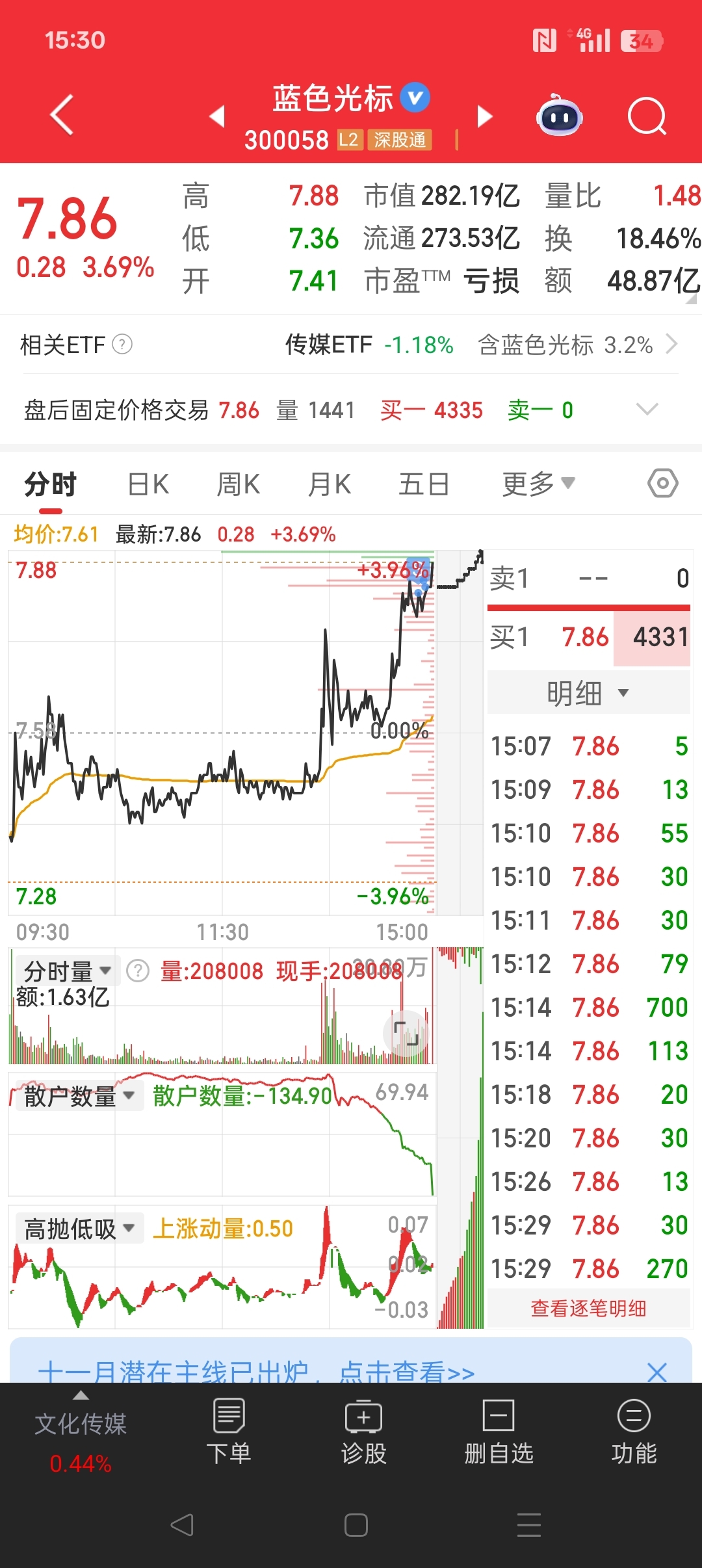 $蓝色光标(SZ300058)$ 挣30个点, 尾盘走了,不知道对不对?祝留下来的兄弟。继续发财