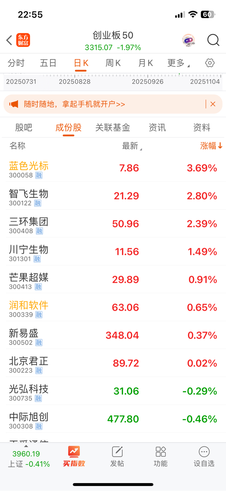 $蓝色光标(SZ300058)$ 对于个位数的你来说,没人会说你不该涨,而且做为创业板的票,你就要该有20厘米的样子,不要那么畏畏缩缩连普通票都不如,再不摆脱个位数的话,迟早被叉出去