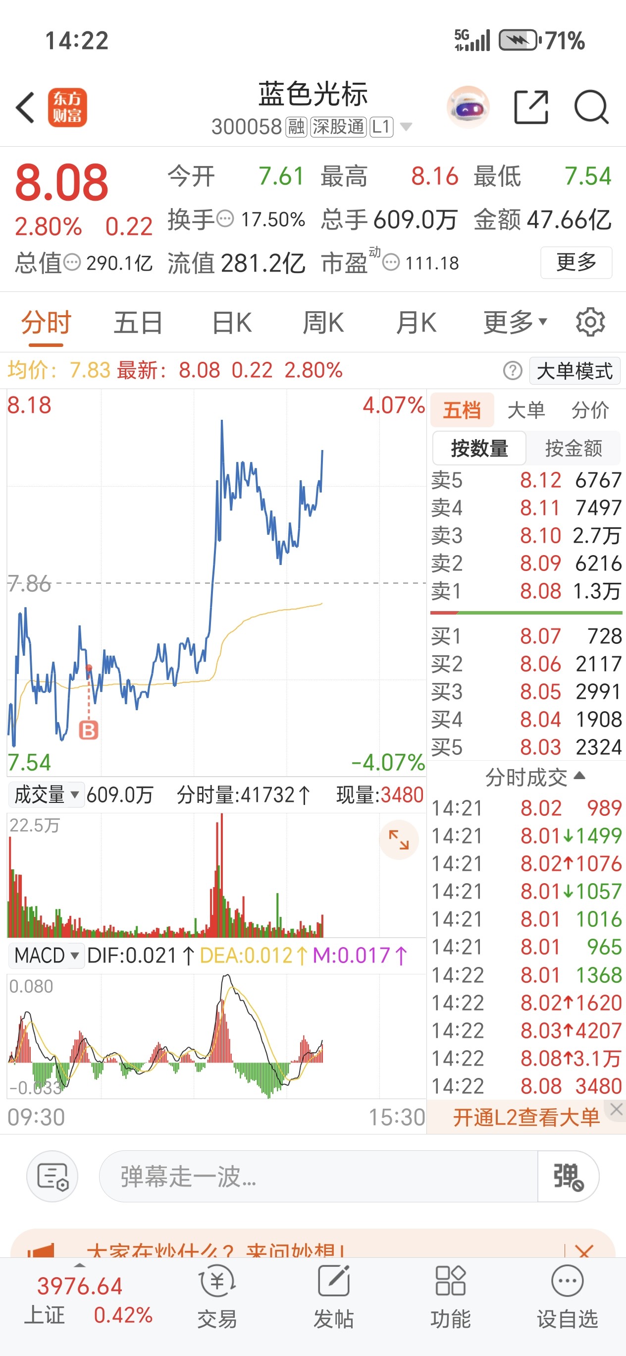 $蓝色光标(SZ300058)$ 大家好,新来的,我是宝宝未满月,这是我小号,大家给我点个关注,刚刚止盈方正电机,常铝股份。。
