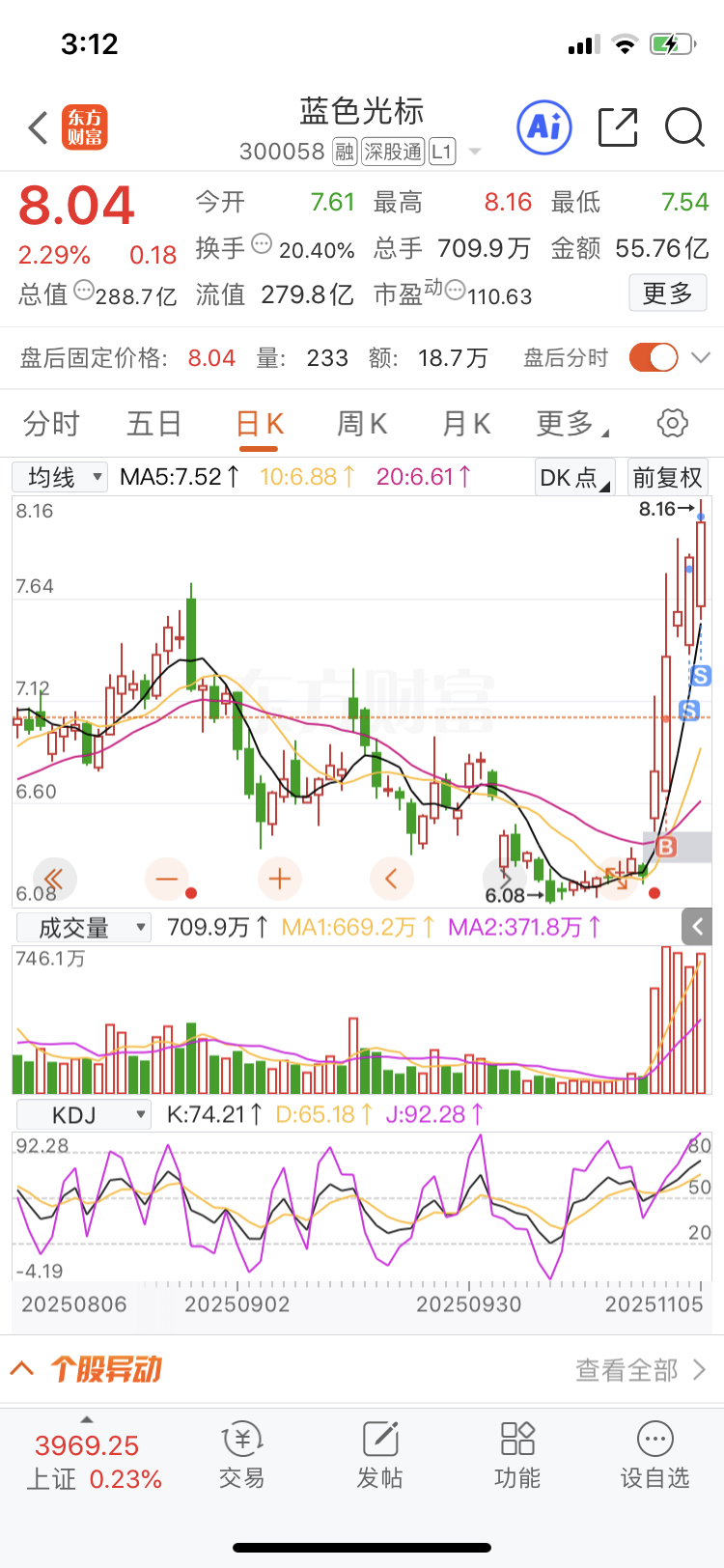 $蓝色光标(SZ300058)$ 套了一年了、加仓后拉上来终于解套了、还留了点底仓!