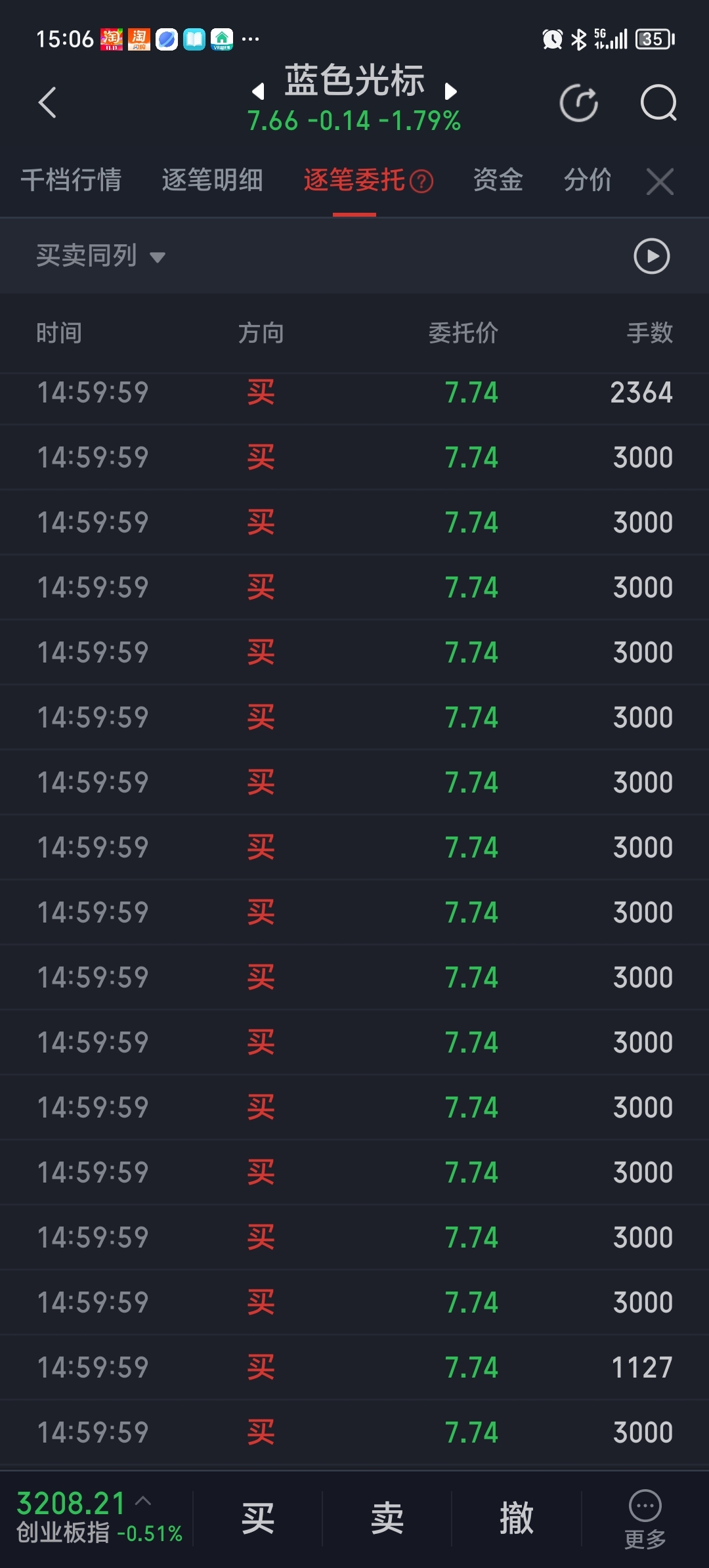 $蓝色光标(SZ300058)$ 尾盘集合竞价7.74这个价格谁买了5万手,然后大家发现主力买了这么多,盘后交易散户又挂近4000手