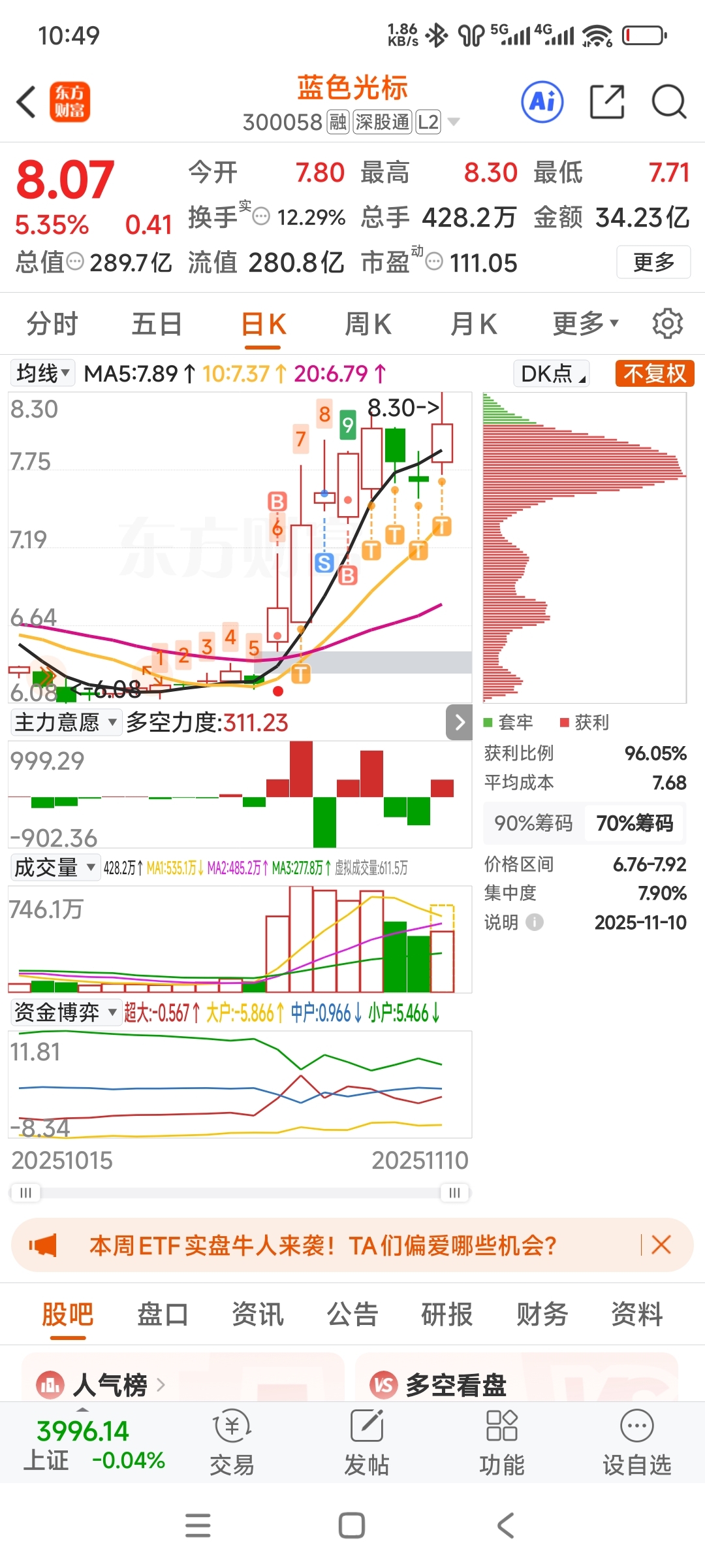 $蓝色光标(SZ300058)$ 这一路上来的上影线,这是什么啊?这是兄弟萌的刺刀啊