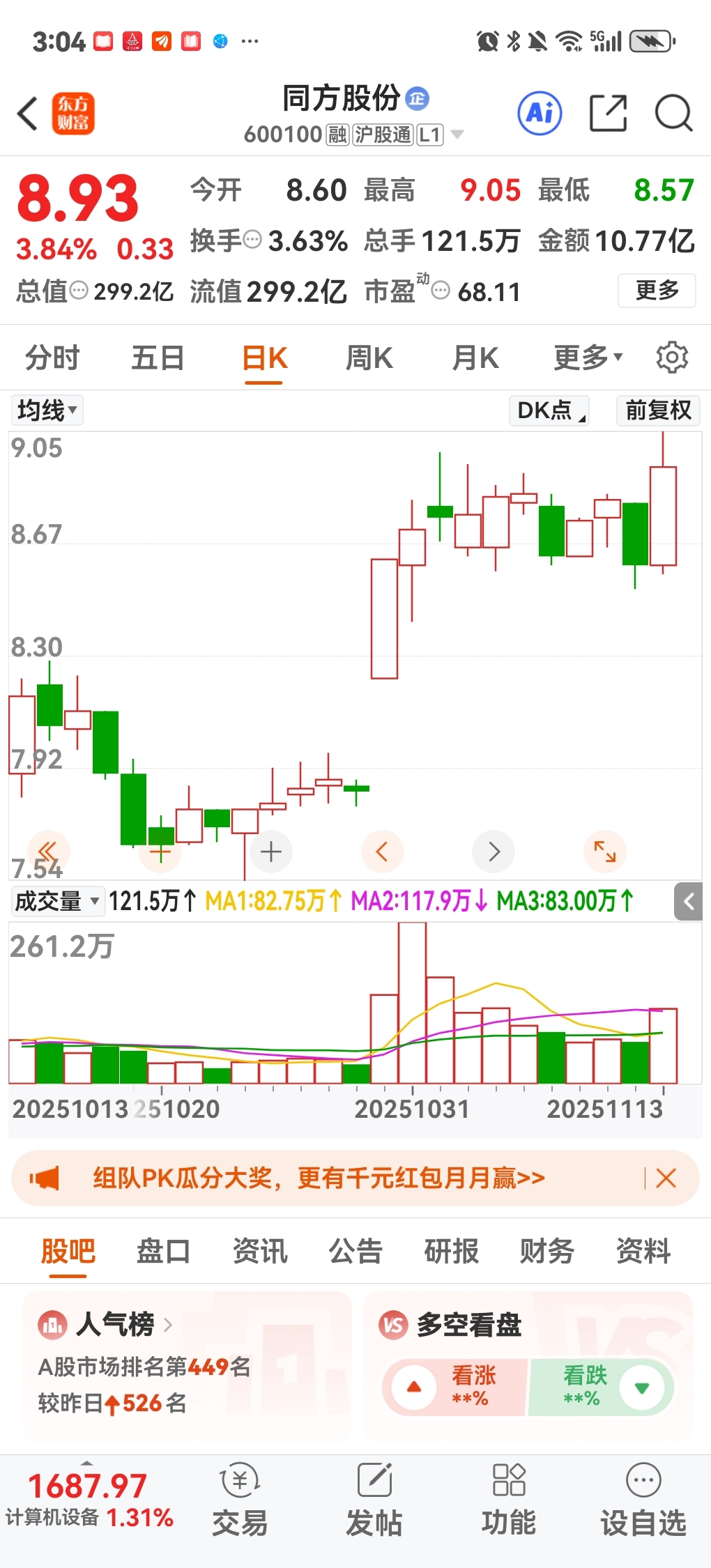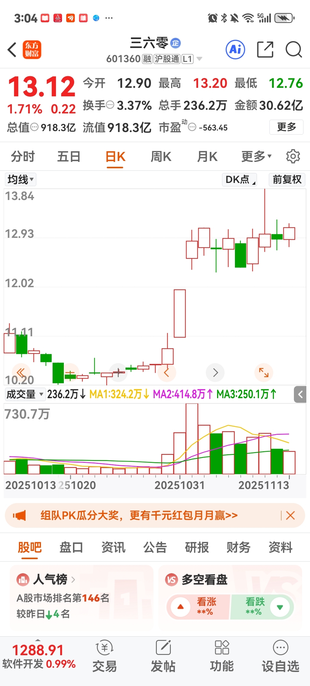 三六零蓝色光标同方股份这三个股短线技术面看涨,个人观点,勿作投资依据