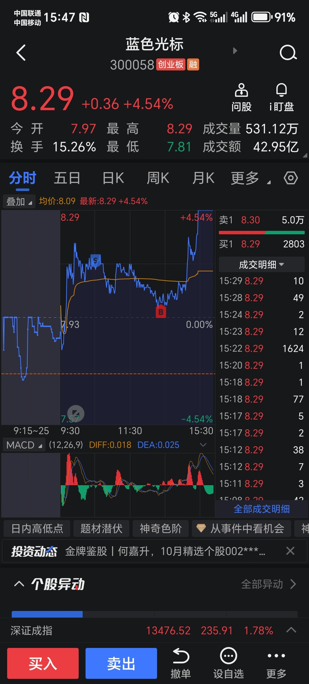 $蓝色光标(SZ300058)$ 8.10卖飞了
