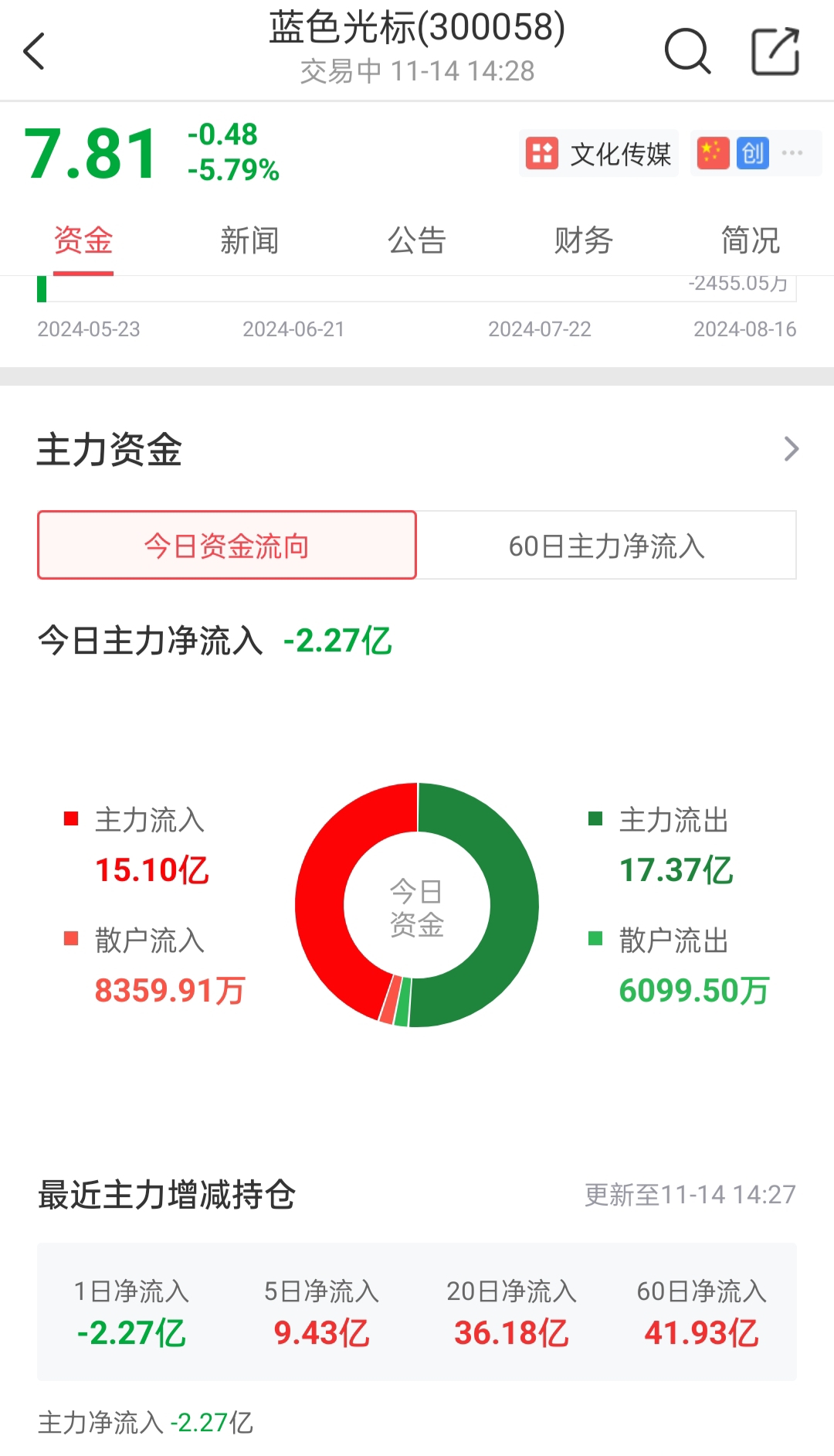 $蓝色光标(SZ300058)$ 慢跌出货确认完毕