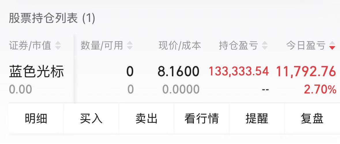 拿了一年蓝色, 昨天8.15果断清仓,这股的尿性太了解了,涨一点就开始收割。总的来说我应该算有耐心的了, 经历了2次20cm都没走,昨天清仓42个点。 有耐心的朋友可以继续持有,等到港股IPO敲定,还是应该有一些空间的!