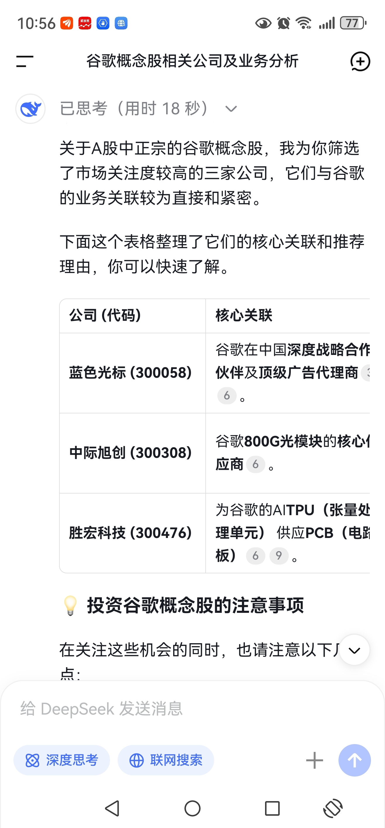 话不多说,DeepSeek告诉你正宗的谷歌概念股